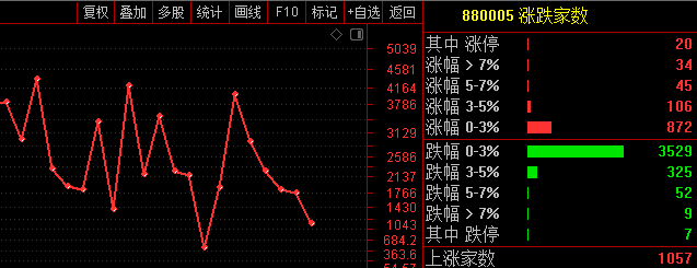 今天收盘后上涨家数1057家,符合指标上的冰点数据。
