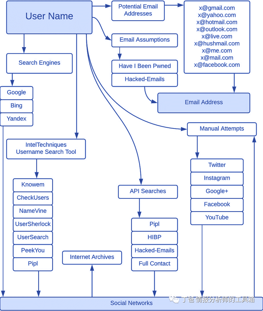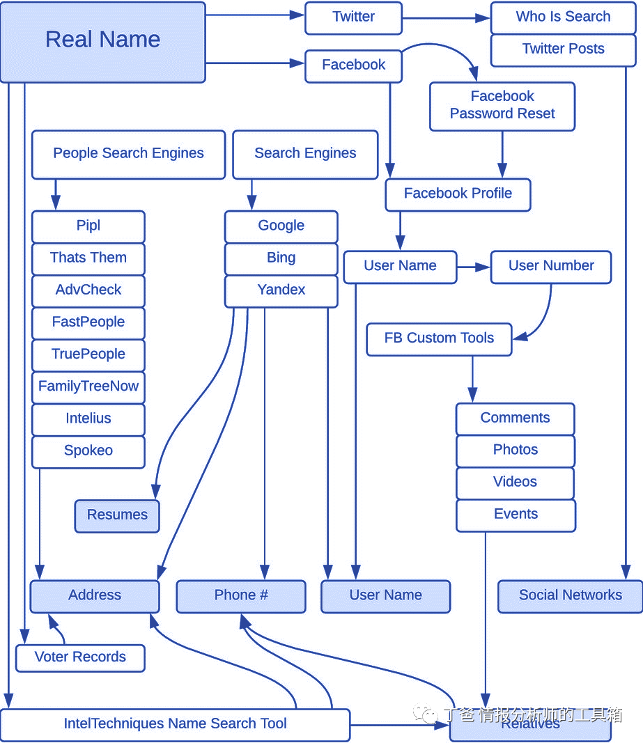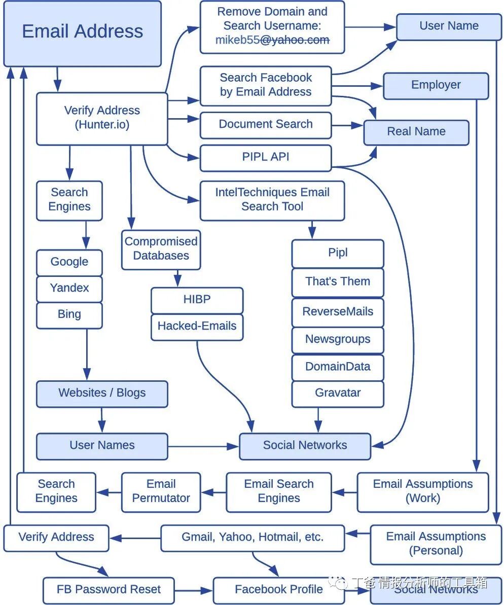 开源情报( OSINT )调查人员负责收集和分析信息,并从他们的发现中提取知识。虽然每个人的工作方式不同,每个组织对于如何进行调查有不同的协议,但通常会遵循某些框架。从公开来源收集信息:遵循“从你知道/拥有的开始”的原则,调查人员将使用电子邮件、电话号码、用户名、姓名、地址等信息搜索他们的来源,以建立一个关于手头案件的文件。筛选:许多调查结果要么是不匹配的,要么与调查无关,必须把它们放在一边,以便做出正确的评估。使用错误的信息将不可避免地导致对案件做出错误的判断。信息分析:使用自下而上的逻辑(或归纳推理),分析师/调查人员查看数据,并根据他们所看到的建立一个理论,努力获得可操作的见解。这可能是一些简单的事情(直言不讳),也可能是揭露非常复杂的阴谋和计划。获得见解:在最后阶段,调查人员可以对给定的案件提出建议,并可以用相关信息提出他们的推理。如果需要检查可能的偏见,在这个阶段让另一名调查人员参与是一个很好的做法。![]()