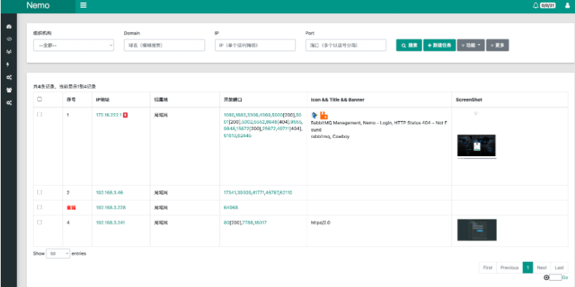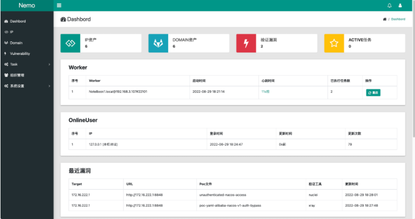 Nemo是用来进行自动化信息收集的一个简单平台,通过集成常用的信息收集工具和技术,实现对内网及互联网资产信息的自动收集,提高隐患排查和渗透测试的工作效率,用Go语言完全重构了原Python版本。