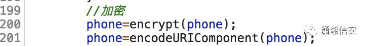 查看源码发现他这里对phone进行了前端加密,首先是通过encrypt加密然后对加密的内容进行url编码。前面的%3D的url解码就是=