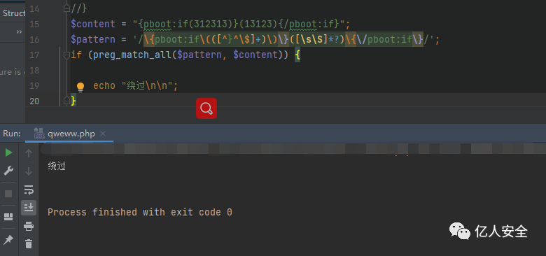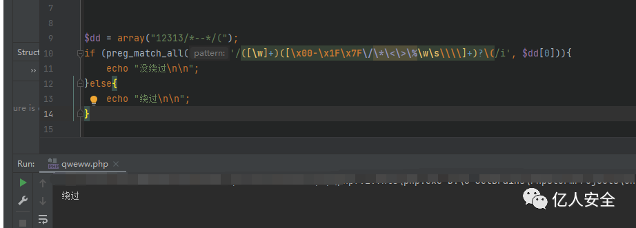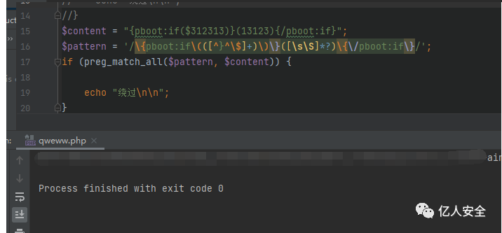 继续往上看,看到这个if判断,这里也是将$matches[1][$i]进行过滤,保证用户输入的字符串是无危害的,简单来说就是‘括号前面不能有字母、数字字符串’。