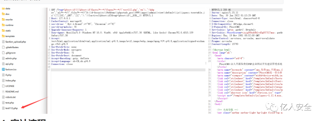 通过上面file函数获取的美元符号,并且通过fputs进行写文件,当然需要绝对路径才能读取美元符,这里就比较简单了,直接让cms报错就好了。