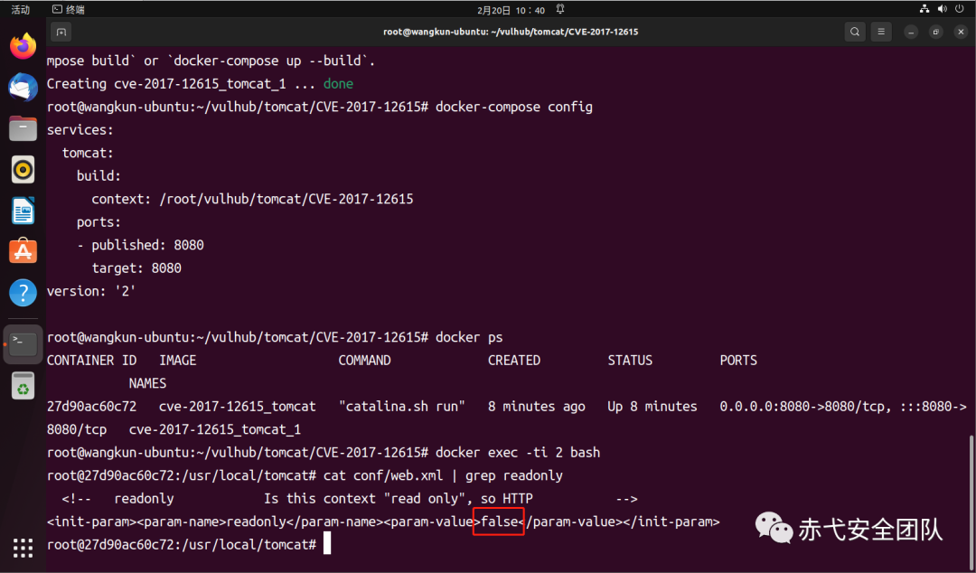 docker psdocker exec -ti 2 bashcat conf/web.xml | grep readonly