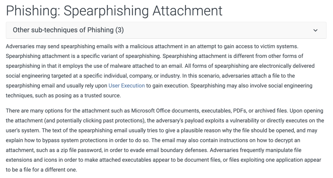这个回答其实是很棒的。他并没有完全照抄MITRE ATT&CK官方文档中的对于T1566.001的说明: