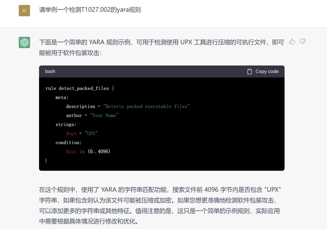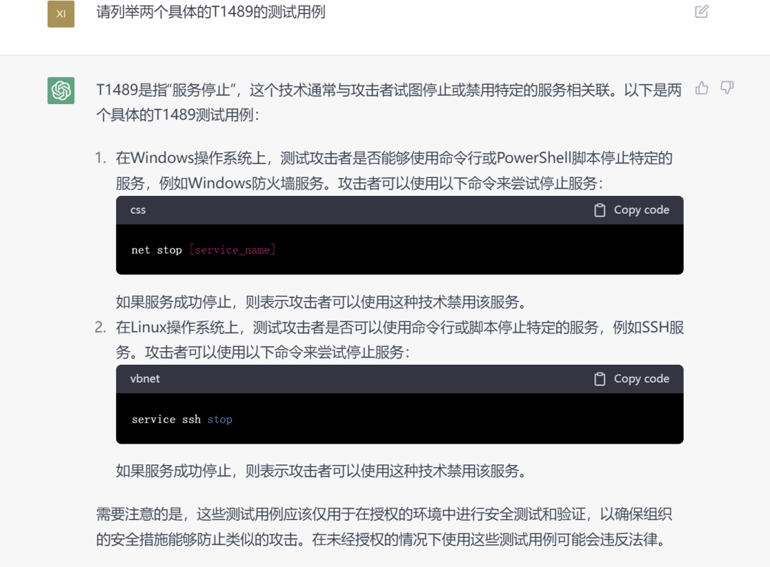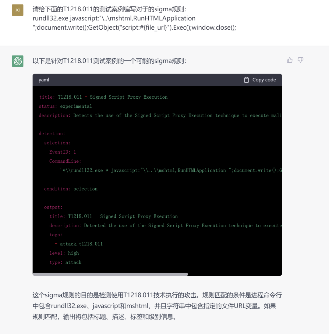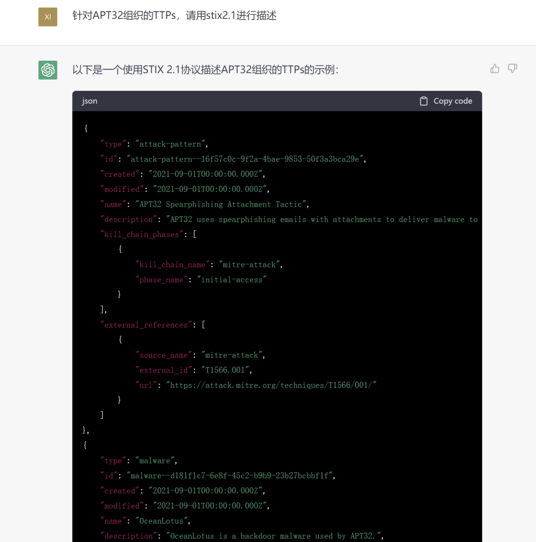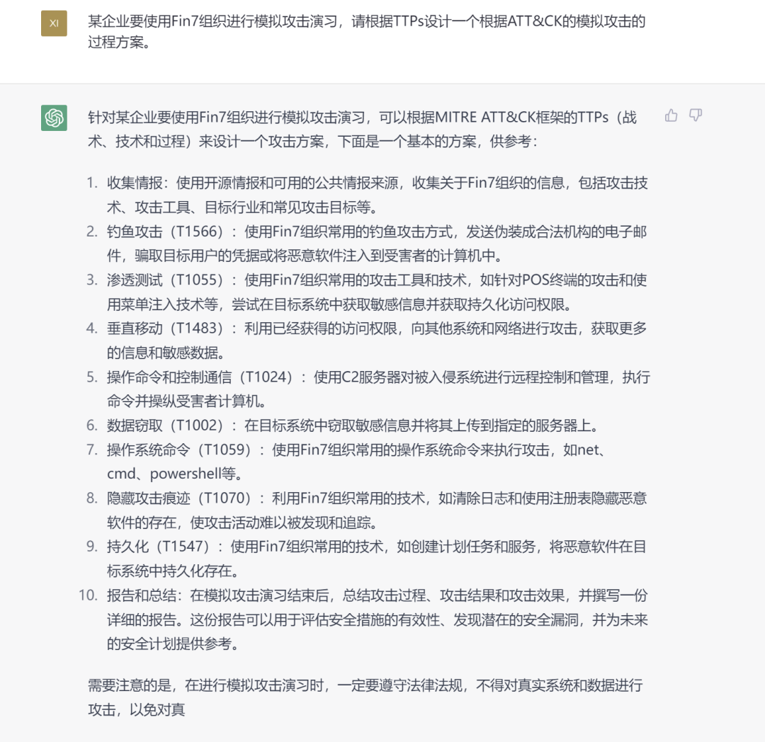 上面问题主要考察了ChatGPT对ATT&CK相关概念的理解程度,结果还是非常让人满意的。