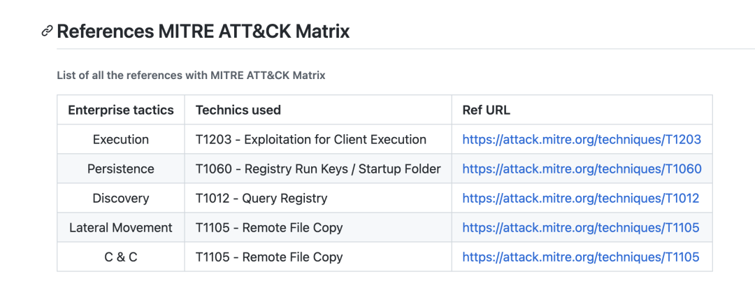 选取它的目的是该文章中就列出了具体的ATT&CK技术点: