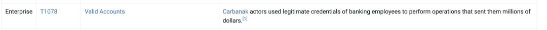 T1078:这个技术点同样针对CARBANAK这个后门。不过这个点的提取有点问题,文中的描述并未提到有效账户这个技术点。不过,笔者猜测,可能是CARBANAK后门跟CARBANAK组织同名,而CARBANAK组织有使用过T1078,因此造成了提取错误?