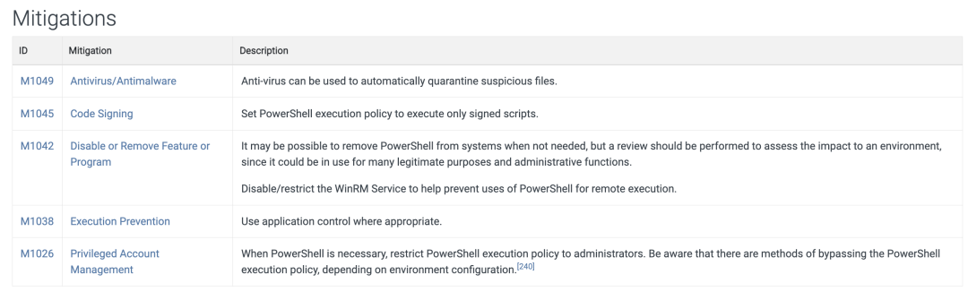 综上所述,通过限制PowerShell的使用权限、应用程序控制、安装防病毒软件、加强系统日志监控、加强安全意识培训、实施代码审计和安全审计等措施,可以有效缓解T1059.001攻击技术的风险。 |