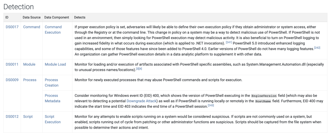 通过这些数据源的综合使用,可以更好地检测到T1059.001技术的使用情况。 |