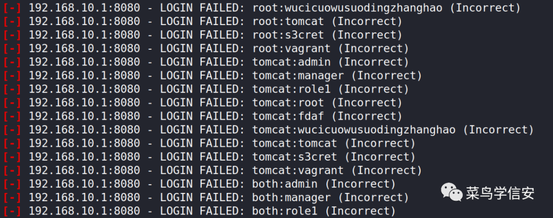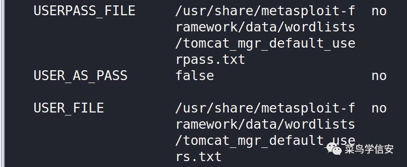 msf6 auxiliary(scanner/http/tomcat_mgr_login) > show options可以通过指定 USER_FILE 的方式,实现密码喷洒攻击.但这里不进行演示.
