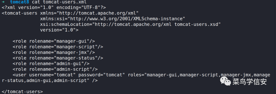 cd /root/vulhub/tomcat/tomcat8由于这个镜像启动后登录管理页面存在重复验证的问题,这里不再利用docker-compose.yml