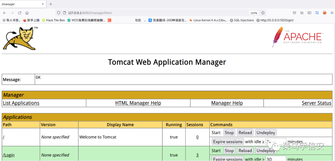 访问manager后台: http://127.0.0.1:8080/manager/html