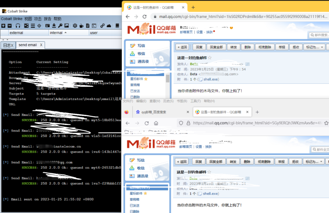 3、在Cobaltstrike工具,点击攻击->邮件钓鱼