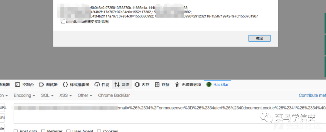 但是这个poc很鸡肋。因为要打出cookie的话长度受限,且利用条件苛刻(firefox+按键)回头看了下发现有form标签也有输出点,最初以为form能执行的JS事件就只有reset和submit,后来测试跑onmounseover也能弹框。encodeurl(email="/onmouseover="alert(document.cookie)&#[email protected])