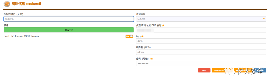 8、在攻击机火狐浏览器foxyproxy插件中配置代理服务器