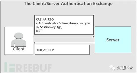 Client 收到 sessionkey-as 加密的 sessionkey-tgs 和 Server 密码 HASH 加密的 sessionkey-tgs 之后用 sessionkey-as 解密得到 sessionkey-tgs,然后把 sessionkey-tgs 加密的 TimeStamp 和 ST 一起发送给 Server。