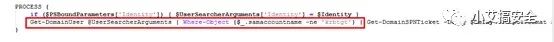 首先在 Invoke-Kerberoast 函数中通过脚本中的函数 Get-DomainUser 查询组内所有用户 LDAP 库中存储的内容,并去除 krbtgt 之后通过管道符传给 Get-DomainSPNTicket。