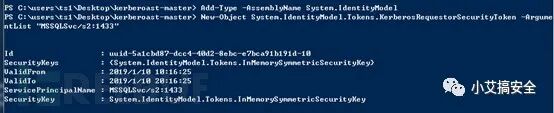 PS C:\> New-Object System.IdentityModel.Tokens.KerberosRequestorSecurityToken -ArgumentList "MSSQLSvc/s2:1433"