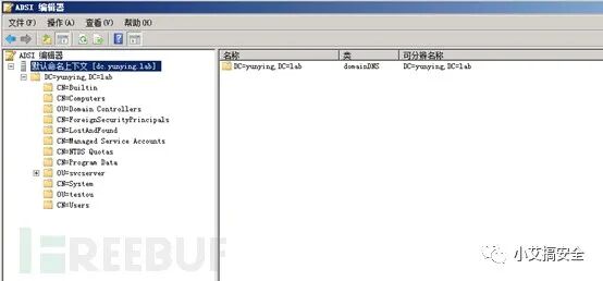 在域控中默认安装了 ADSI 编辑器,全称 ActiveDirectory Service Interfaces Editor (ADSI Edit),是一种 LDAP 的编辑器,可以通过在域控中运行 adsiedit.msc 来打开(服务器上都有,但是只有域控中的有整个域内的配置信息)。