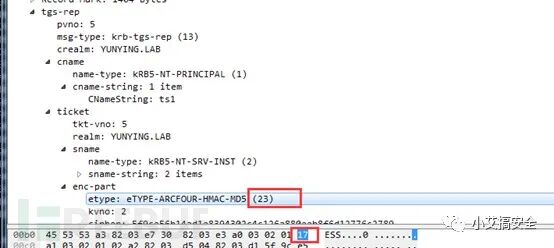 同样,上图框中的变量$Etype 的值是 23,实际上就是 RC4 加密算法的代号。
