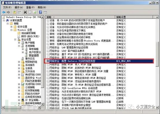 下图为设置 Kerberos 的加密方式,在域中可以在域控的「组策略管理」中进行设置: