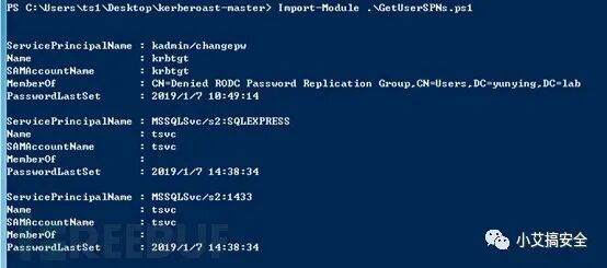 GetUserSPNs 是 Kerberoast 工具集中的一个 powershell 脚本,用来查询域内注册的 SPN。