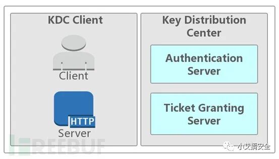 其中 KDC 服务默认会安装在一个域的域控中,而 Client 和 Server 为域内的用户或者是服务,如 HTTP 服务,SQL 服务。在 Kerberos 中 Client 是否有权限访问 Server 端的服务由 KDC 发放的票据来决定。