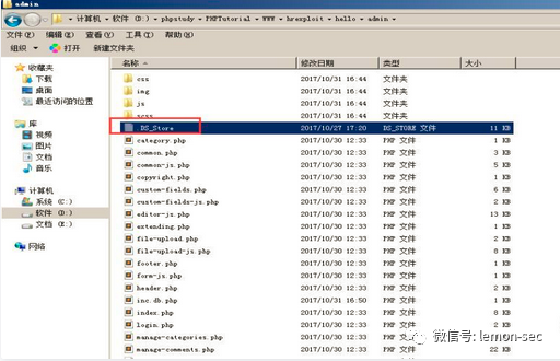 phpstudy搭建PHP环境,把.DS_store文件上传到相关目录。然后利用工具进行相关检测