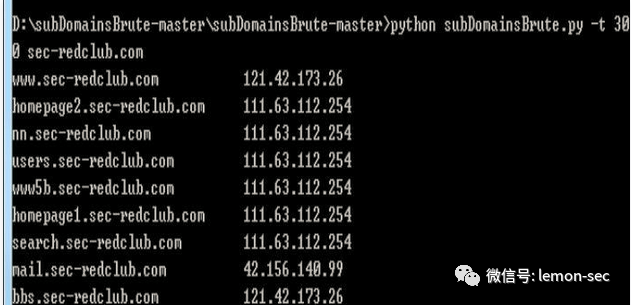 Python subDomainsbrute.py sec-redclub.comNmap是一个网络连接端口扫描软件,用来扫描网上电脑开放的网络连接端口。确定哪些服务运行在哪些连接端口,并且推断计算机运行哪个操作系统。它是网络管理员必用的软件之一,以及用以评估网络系统安全。主机发现