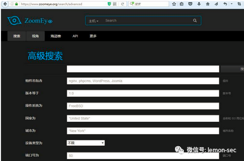 ZoomEye 使用 Xmap 和 Wmap :两个能获取 Web 服务 和公网设备指纹的强大的爬虫引擎定期全网扫描,抓取和索引公网设备指纹。我们今天主要讲下如何使用他的语法规则去高级搜索,搜索有用信息。