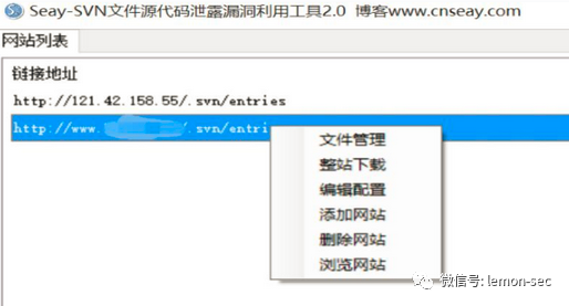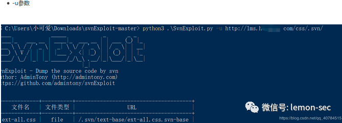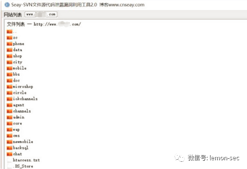 .DS_Store文件泄漏利用脚本,它解析.DS_Store文件并递归地下载文件到本地。Subversion,简称SVN,是一个开放源代码的版本控制系统,相对于的RCS、CVS,采用了分支管理系统,它的设计目标就是取代CVS。互联网上越来越多的控制服务从CVS转移到Subversion。SVN漏洞在实际渗透测试过程中,利用到也比较多,由于一些开发管理员疏忽造成,原理类似DS_Store漏洞。我们这里不再进行搭建环境,给大家推荐工具,利用方法如下:下载地址:https://pan.baidu.com/s/1jGA98jG