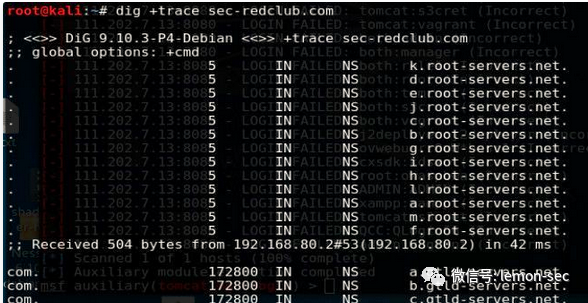 dig非常著名的一个查询选项就是+trace,当使用这个查询选项后,dig会从根域查询一直跟踪直到查询到最终结果,并将整个过程信息输出出来