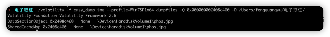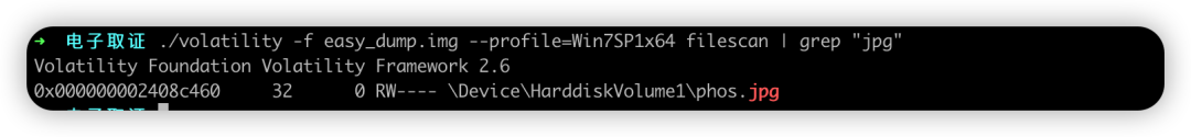 volatility -f easy_dump.img --profile=Win7SP1x64 filescan | grep "jpg"