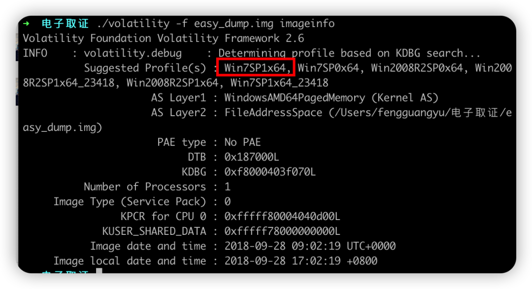 如果操作系统错误,是无法正确读取内存信息的,知道镜像后,就可以在--profile=中带上对应的操作系统