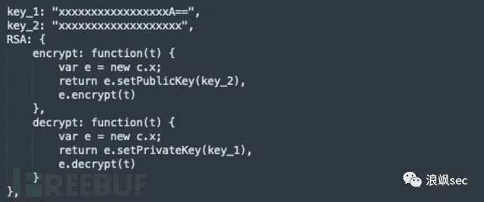 通过查看代码知道x为AES加密后的json数据,x1是经过RSA加密后的AES密钥,sign则是某种签名,且AES加密的密钥为动态密钥。继续查看RSA加密方法,key_1就是RSA加密的私钥![Js逆向实战案例插图16]()