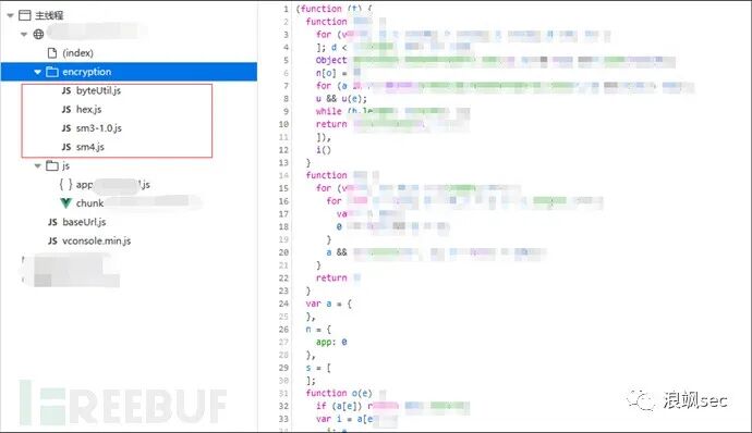 寻找加解密关键点,在encryption文件夹下的js文件可以看到该项目很有可能使用的是国密加密算法SM3,SM4![Js逆向实战案例插图2]()
