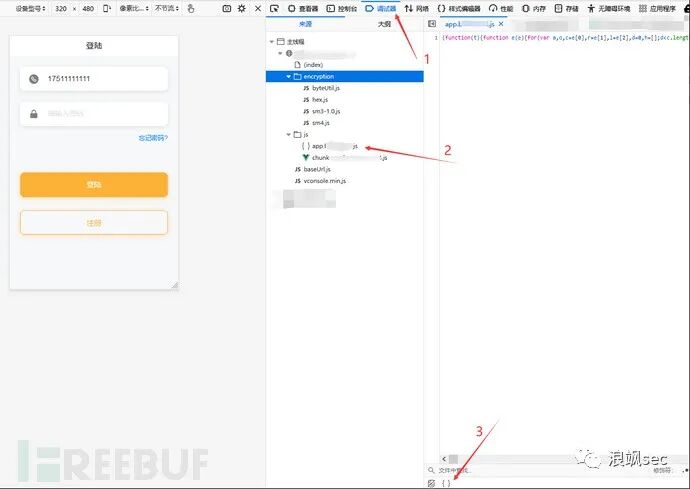 点击调试器,选中要查看的js文件,点击下方的{}使代码更容易查看![Js逆向实战案例插图1]()