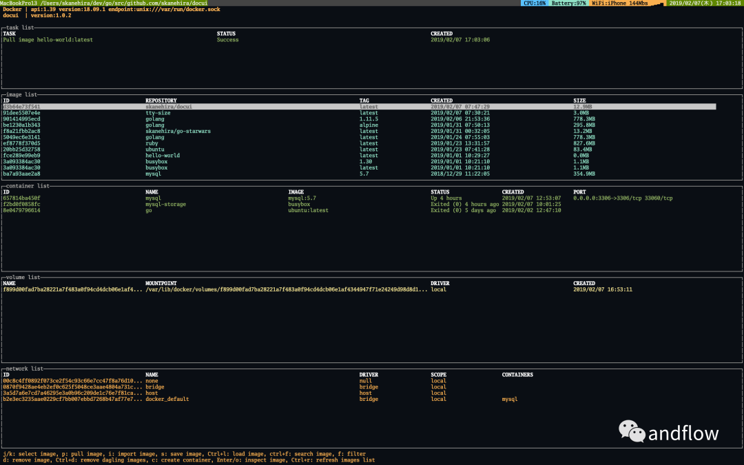 Docui也是一款UI终端,支持Mac、Linux操作系统。要求GO 1.11.4以上版本,Docker引擎在18.06.1以上,以及Git。