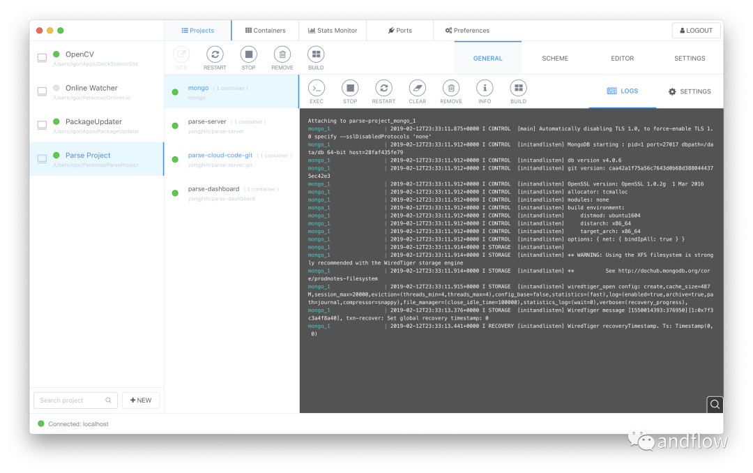 DockStation免费的全功能桌面应用程序,可满足你使用docker和docker-compose。可以通过docker-compose.yml使用本机Docker Compose CLI命令帮助生成一个干净的本机文件,甚至在应用程序外部也可以使用。它还可以帮助管理容器和服务,包括远程和本地的容器,并对其进行监控,比如日志监控,搜索日志,分组,运行工具以及获取容器信息。还有其他工具可用于对容器资源进行通用,多个和单个的监控。