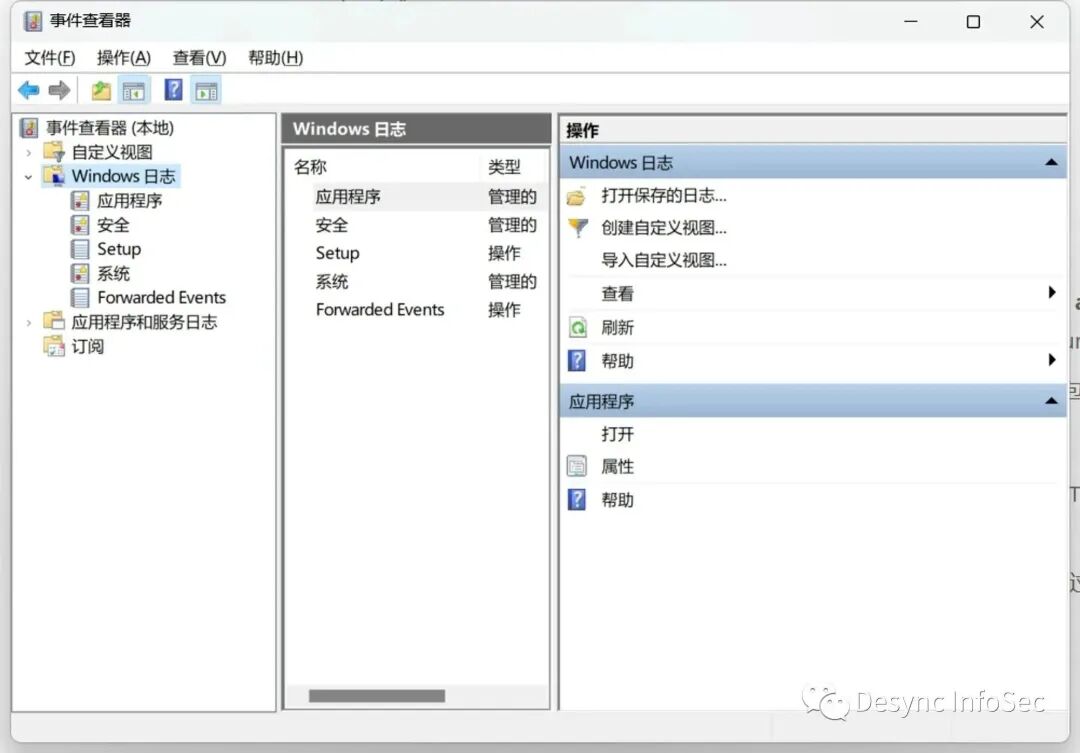 Windows默认事件日志查看器为eventvwr.msc,能实现简单的使用,Win+R键后输入eventvwr回车即能打开。Windows主要的日志在“Windows 日志”中,该文件夹中包含所有Windows系统上的五个标准类别。比较常用的Windows日志有系统日志、安全日志、应用程序日志这三个日志内容。