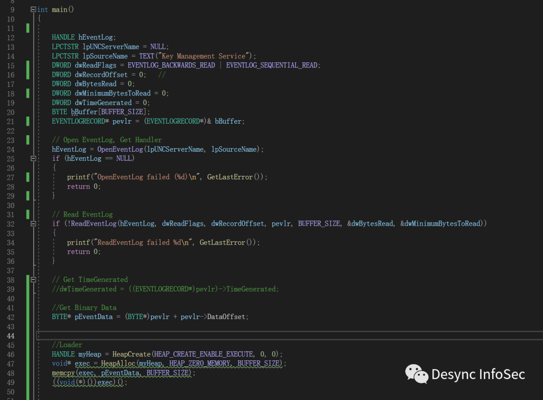 为了提取并执行写入的载荷,这边用非常简单的C++程序和Python脚本进行证明,代码已放在Github的EventLogPersist: A Simple Proof Code for Extracting and Executing Shellcode from Event Logs (github.com)仓库中。