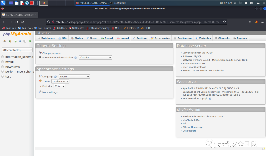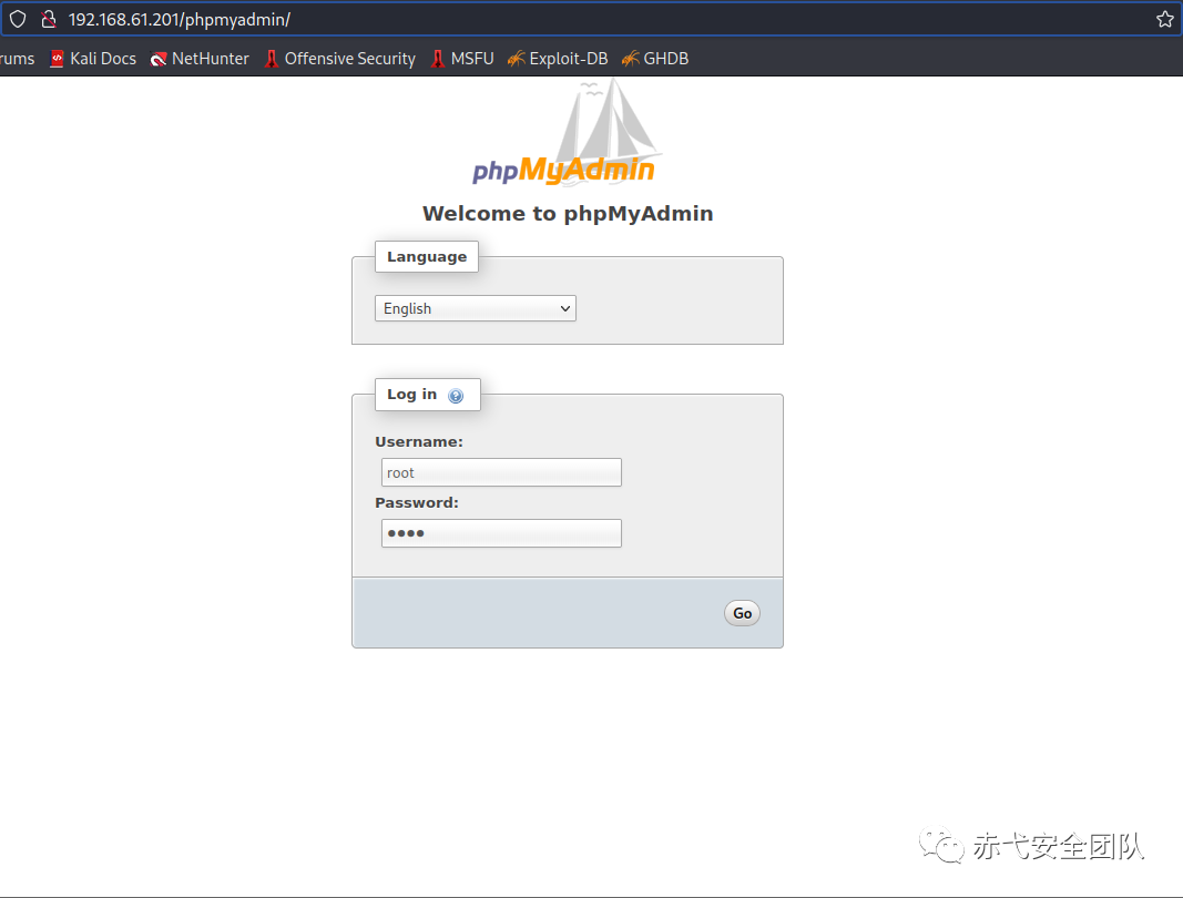 1)我们访问:http://192.168.61.201/phpmyadmin/,来到phpmyadmin页面。