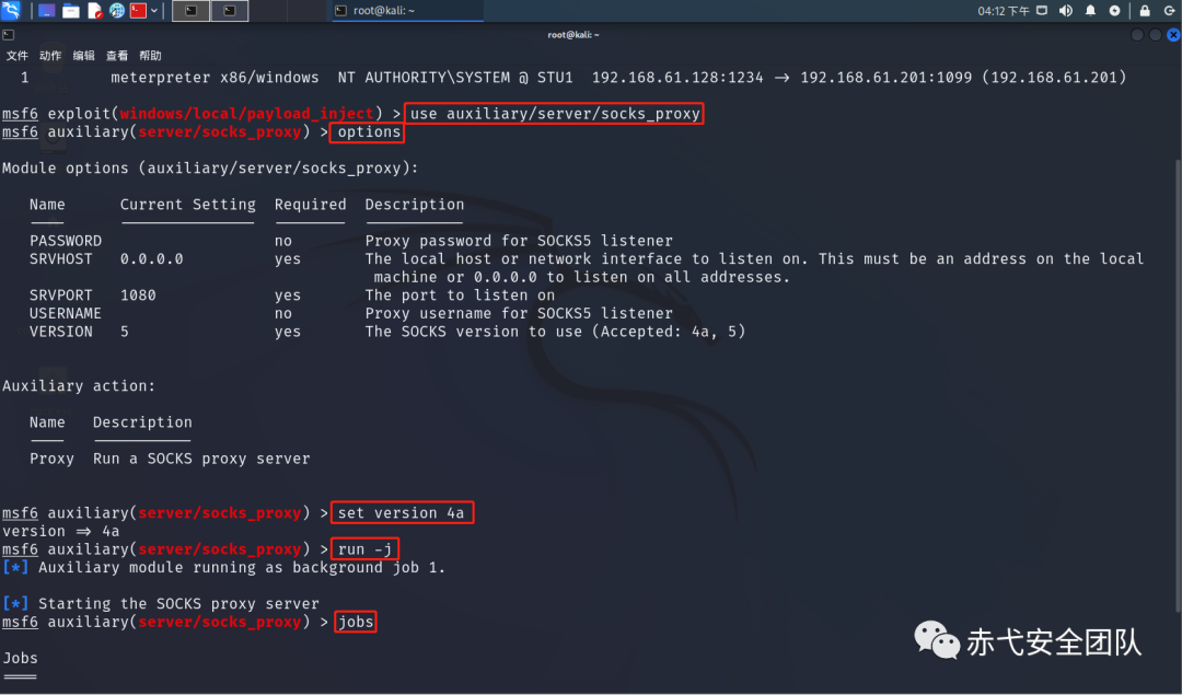 use auxiliary/server/socks_proxyoptionsset version 4arun -jjobs
