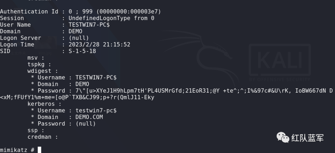 我将猕猴桃上传之后,尝试一波 sekurlsa::logonpasswords 却发现: