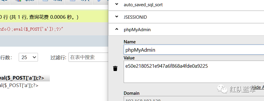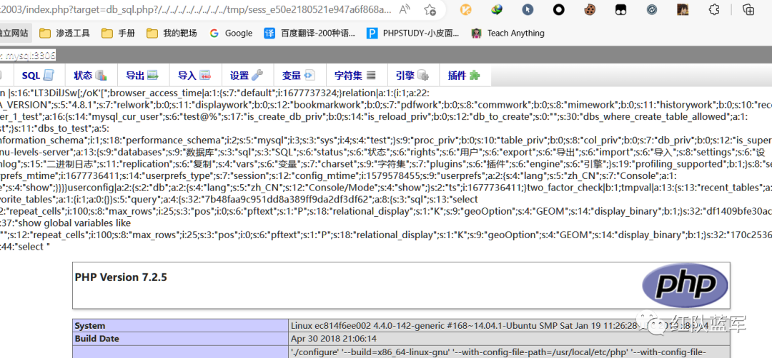 这条文章,这里采用了一种先通过控制台查询SQL在session文件写入一句话马,然后再包含利用的方式,我也复现: