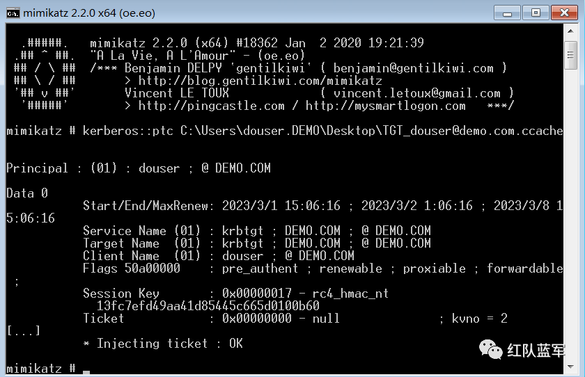 当显示这个效果的时候证明票据导入成功,此时我们可以使用 psexec 进行连接,
